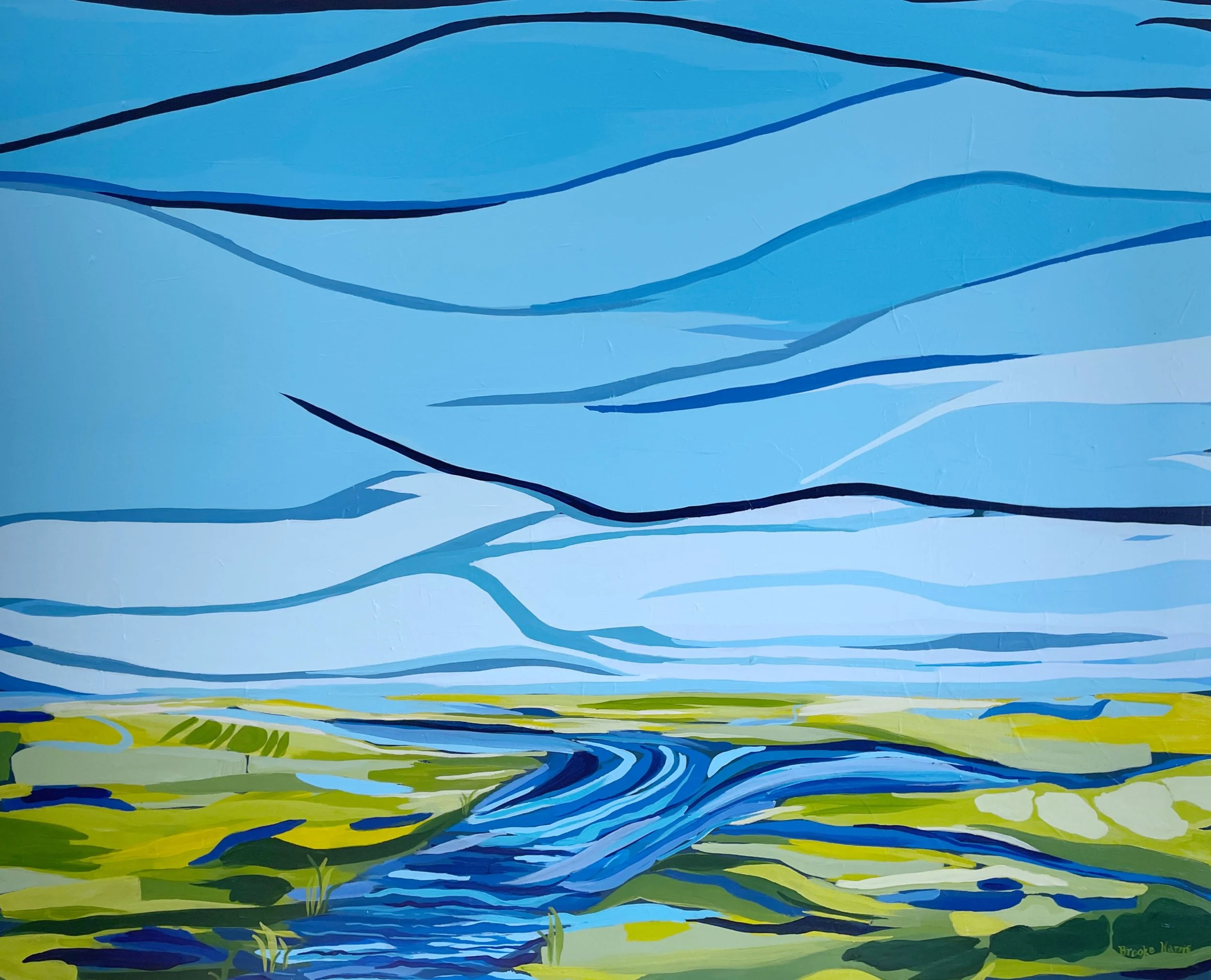 Tributaries is a four-piece abstract landscape collection inspired by the winding marshes of South Carolina’s Lowcountry.